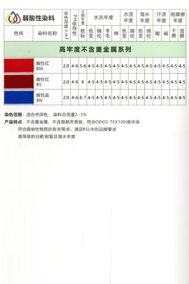 廈門市億染化工科技有限公司是一家集研發、生產、銷售一體的綜合型企業。公司主要經營:酸性染料、金屬絡合染料、高牢度分散染料及印染助劑。公司信守“以誠信贏合作、以質量贏市場、以創新贏發展、以服務贏生存”的企業精神服務于廣大客戶,多年以來建立了良好的市場口碑,市場遍布福建、廣東、浙江、江蘇、山東及東南亞國家,與多家知名企業建立了長期合作伙伴關系!